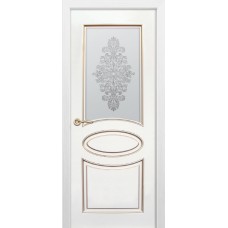 Дверь с ПВХ покрытием Эмма 180 ДО (Софт Белый/Патина Шампань, Наливной витраж)